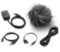 『APH-4n Pro』は、ハンディレコーダー『H4n Pro』の利用シーンを拡張する専用アクセサリパッケージです。業務レベル の風防性能を誇るヘアリーウィンドスクリーン、バッテリー残量を気にせずに長時間使用できるACアダプタ、『H4n Pro』 のライン出力をカメラのマイク入力に接続するためのアッテネータ・ケーブル、ヘッドフォンモニタ用に分岐させるスプリッ タ・ケーブル、録音ファイルをパソコンに転送できるUSBケーブルを同梱しています。