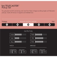 ヴィンテージのボビン構造から正真正銘のオリジナル時代のクロスワイヤリングまで、フェンダーのPure Vintageピックアップは本物の伝統的なフェンダートーンとパフォーマンス性を実現するために、精密な仕様にこだわっています。 本格的なヴィンテージである60年代前半Telecasterのシングルコイル・ピックアップは、クリスタルクリアでどんな音楽にも抜群にハマるホットで強いテレ・トゥワングを生み出し、あなたのTelecasterトーンを盛り上げます。