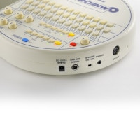 OM-108には多くの電子楽器に搭載されているディスプレイはなく、ボタンやつまみで設定した状態がそのまま鳴ります。楽器未経験者にとっては直感的で分かりやすく、プロミュージシャンにとっては、パネル上で音を創りこみながらリアルタイムなプレイを可能にするインターフェイスです。キーボードやリズムマシンのような使い方や、MIDI OUTによる音色の拡張も可能。気軽に、マニアックに、奏者に合わせた楽しみ方ができるのがオムニコードの魅力です。